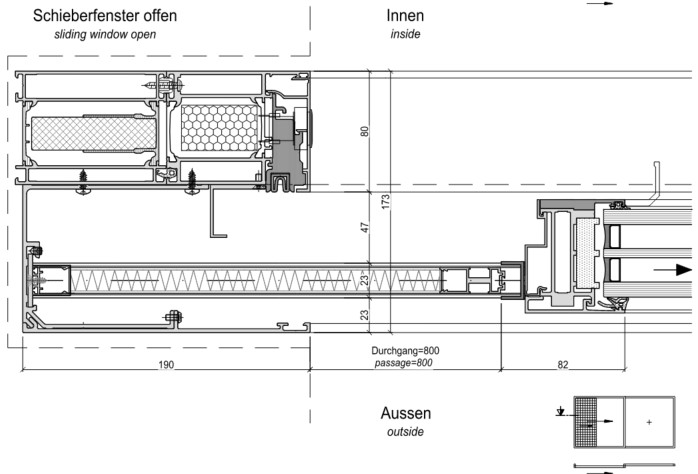 The insect screen is laterally integrated to the profile and is not visible when the window is closed. The maximum standard size of the insect repellent pleated blinds is 3,300 mm in height and 850 mm in width. Larger dimensions are theoretically feasible, but not recommended.