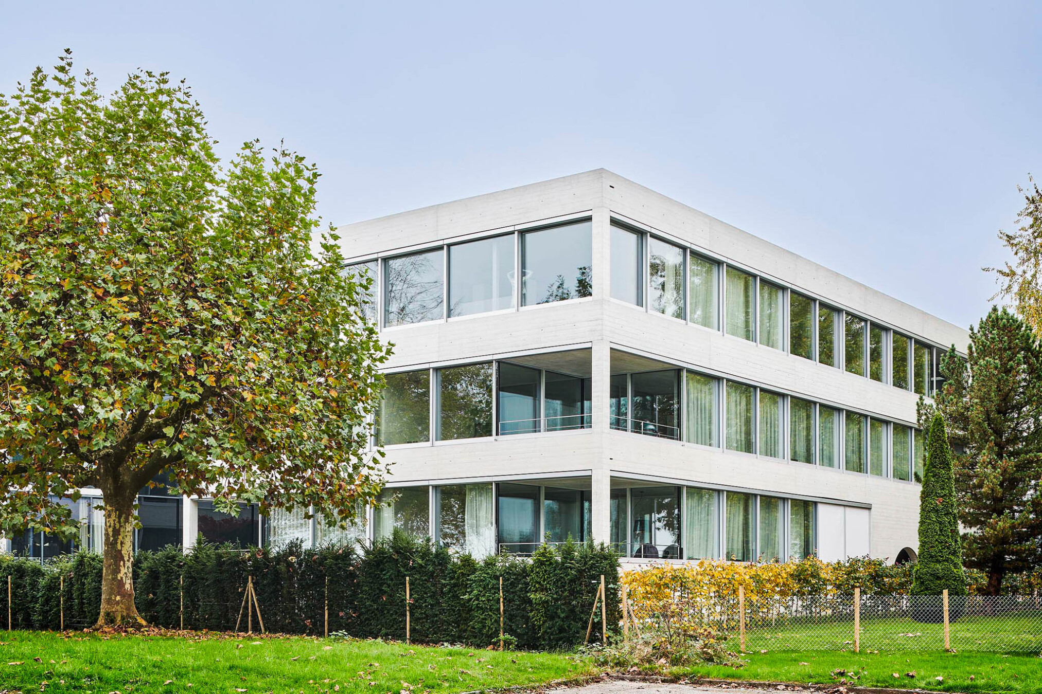 Direkt am Bodensee entstand ein Wohnhaus, dessen klare Architektur bewusst auf Offenheit und Bezug zur Umgebung setzt. Die ruhige Betonfassade wird durch eine durchgehende Fensterstruktur gegliedert, die dem Baukörper Leichtigkeit verleiht und den Blick auf See und Landschaft in den Mittelpunkt rückt.