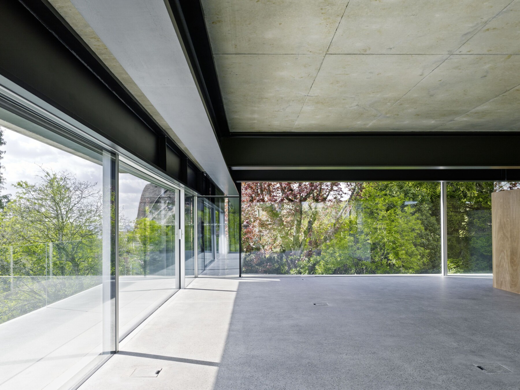 Zürich 1 In Vollbild öffnen Leistung air-lux 14 air-lux Schiebeflügel, 1.6–4.2 Meter breit (Raumhöhen 2.3-2.8m) Festverglasungen, 4.4 Meter breit Innere Verglasungen Türelemente Liftturmverglasung Ganzglasgeländer Architekten Christian Kerez, Zürich Fertigstellung 2014 Foto Georg Aerni, Zürich Awards Prix Acier 2014